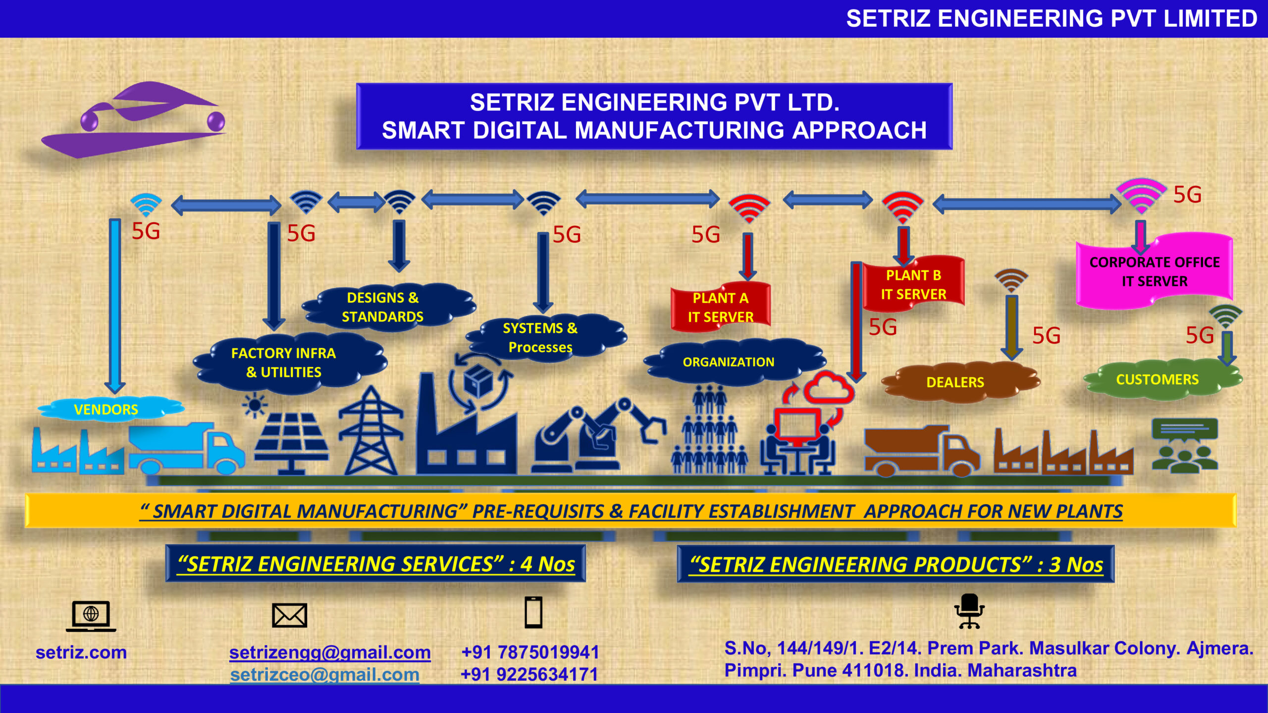 SeTriz ENGG aims to lead the global shift towards Smart Digital Manufacturing by leveraging cutting-edge technologies such as Industry 4.0, IIoT, Robotics Automation, AI, and Machine Learning. By implementing flexible manufacturing lines, digitizing processes, and utilizing cloud-based 5G networks, SeTriz enhances efficiency across group factories, vendors, and customers. Our goal is to create seamless, intelligent manufacturing ecosystems that meet rising customer demands for high quality, shorter lead times, and prompt post-sales service by 2026.